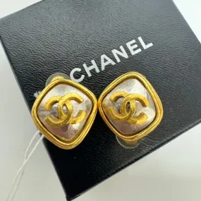 Chanel Gold Silver CC Logo Square Stud Earrings