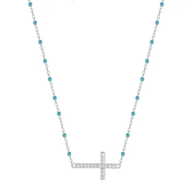 VANESSA CROSS BLUE BEADED SILVER NECKLACE