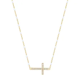 VANESSA CROSS WHITE BEADED GOLD NECKLACE